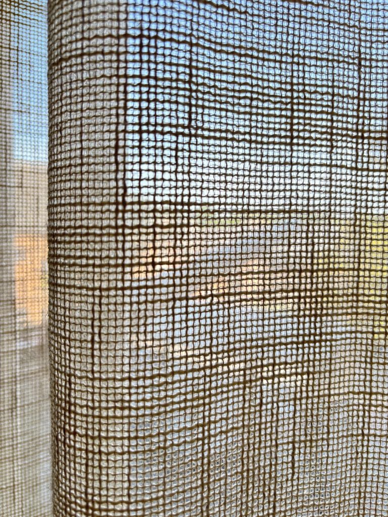 Le Voile Wave (Tissu RETHINK Ecru) : Issu de notre gamme éco-responsable, ce tissu coloris écru apporte une luminosité incroyable. La confection en 2 panneaux permet de libérer facilement l’accès à la baie vitrée vers l’extérieur.