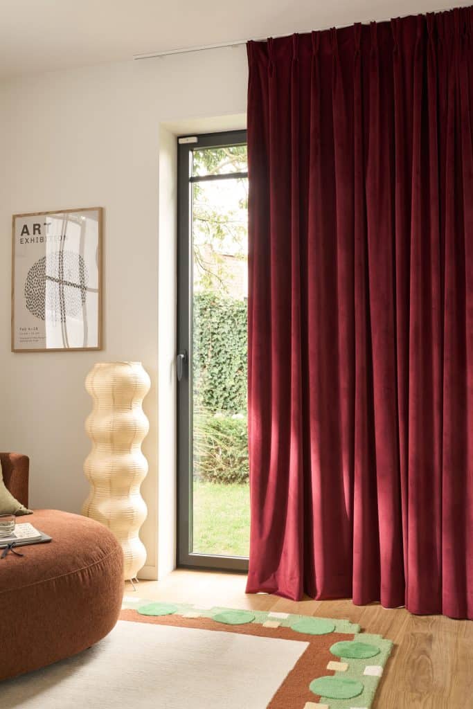De volgende stap is de keuze van de afwerking: ringen, wave, enkele plooi of dubbele plooien, het hangt allemaal af van uw voorkeuren en uw interieurstijl! De Vlaamse plooi-afwerking is ideaal voor thermische en verduisterende gordijnen, omdat deze een optimale isolatie biedt. Door het ontwerp wordt de luchtstroom tussen de vloer en het plafond effectief geblokkeerd, wat zorgt voor een betere bescherming tegen tocht en licht.