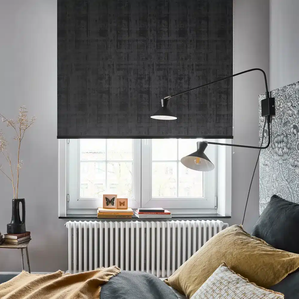 Les toiles sombres pour vos stores enrouleurs apportent une touche d’élégance à votre intérieur. Les tons comme le gris foncé, le noir, l’anthracite, le bleu marine ou le brun profond créent une ambiance chaleureuse et enveloppante, idéale pour instaurer une atmosphère intimiste et cosy, comme les chambres et les salons.