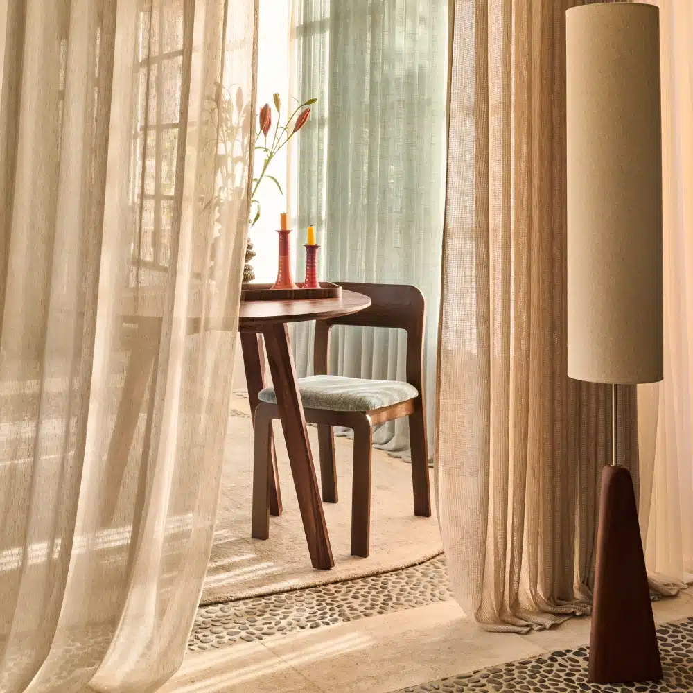 Filtrez la lumière avec subtilité grâce à la collection In Between. Des voilages qui apportent chaleur et texture à votre intérieur, tout en diffusant une lumière douce et accueillante. Heytens vous a réservé une large gamme de textures et de couleurs pour personnaliser votre ambiance. Nos conseillers vous accompagnent pour un projet sur-mesure, chez vous ou en showroom.