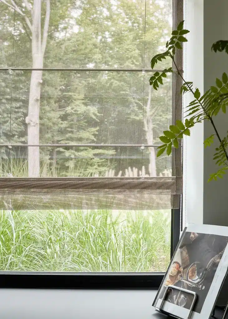 - Tissu tamisant : il diffuse la lumière du jour tout en préservant une certaine intimité dans la pièce ; parfait pour les salons ou les bureaux.
