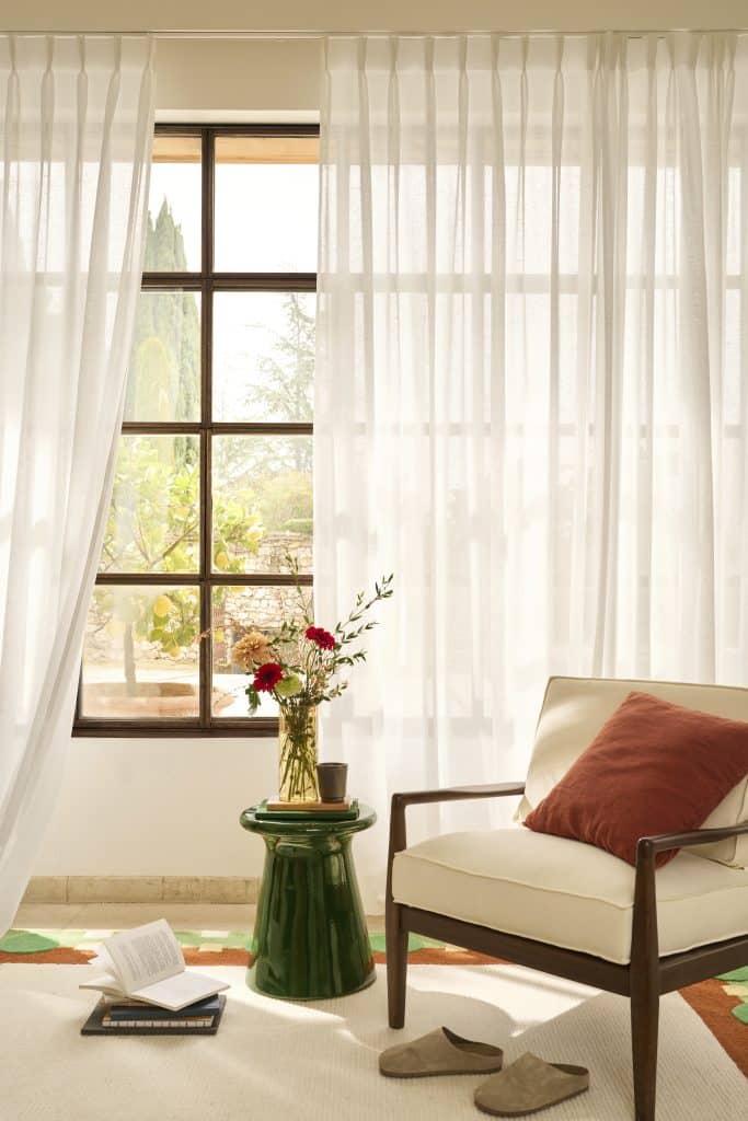 - Un éclairage maîtrisé : le voilage tamise naturellement la lumière du jour et préserve l’intimité de votre intérieur. C’est une excellente alternative aux rideaux opaques lorsque vous souhaitez adoucir l’éclairage dans une pièce très ensoleillée ou conserver une ambiance claire et aérée.